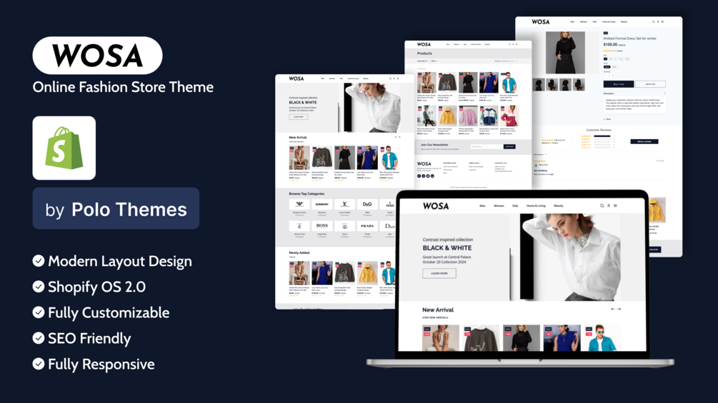 Wosa theme offers an engaging platform to showcase your clothing and other fashion accessories. The theme features easy customization, fully responsive design,and clean typography, making it ideal for your online store.